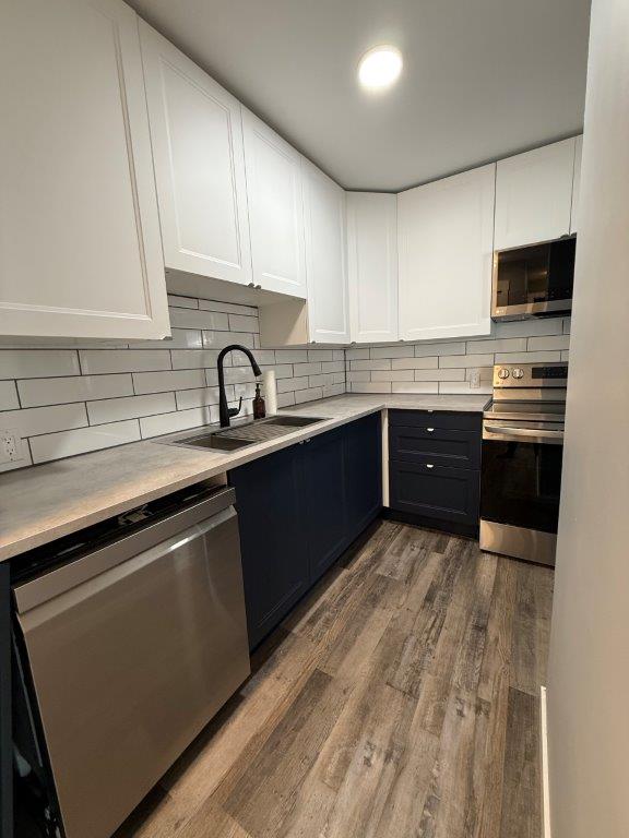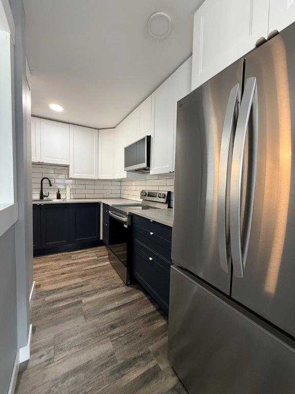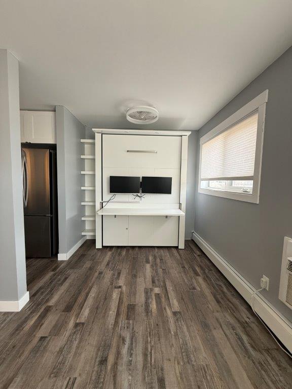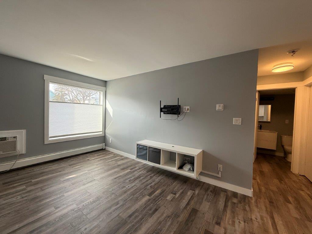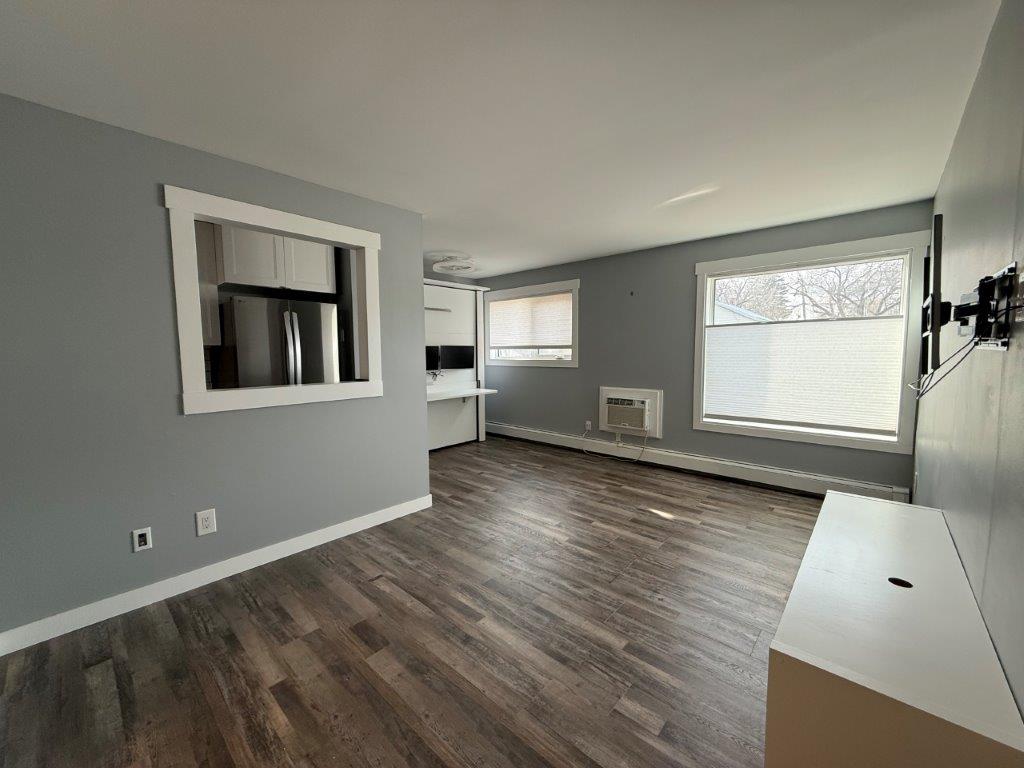 MAIN LEVEL: This condo has been fully renovated in the last year, nothing to do but just move in! You will enter into this main floor condo into a space that is modern and inviting. Kitchen has plenty of cabinets and counterspace with new appliances. There is a mates bed just off the kitchen adding an option for company to stay. You can see into the living room from the kitchen. One bedroom with built in storage, updated 4-piece bath and a storage room completes this unit. Flooring is the same throughout the unit. The building is in a prime location just a block from Main Street. Shared laundry in the building on the second floor, there is one exclusive parking spot at the back of the building. The exterior of the building has received several updates including. This is a well maintained building and includes a patio space where you can bbq. Condo fees are $330/month and that includes heat, water and the reserve fund. Call to book your tour today of this move in ready condo!